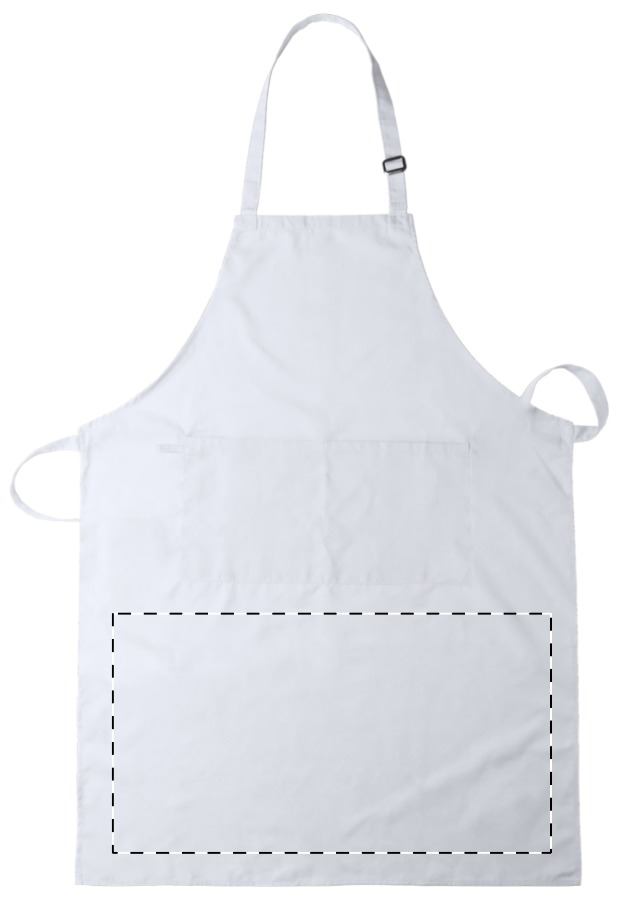 Grembiule colorato con tasche frontali. Materiale: 80% poliestere / 20% cotone.