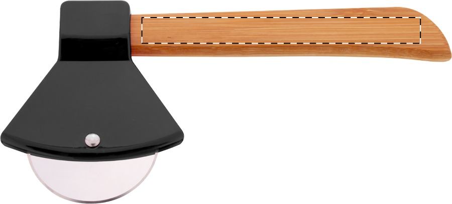 Taglia pizza a forma di ascia con manico in bambù e lama in acciaio inossidabile.