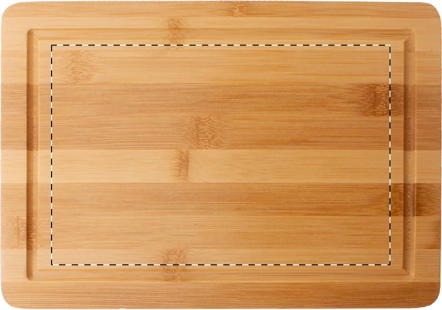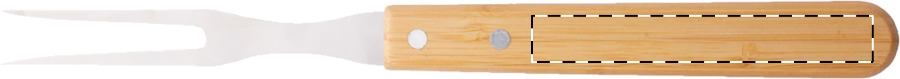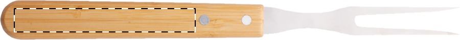 Set da carne composto da tagliere in bambù, forchetta e coltello in acciaio inox e manici in bambù.