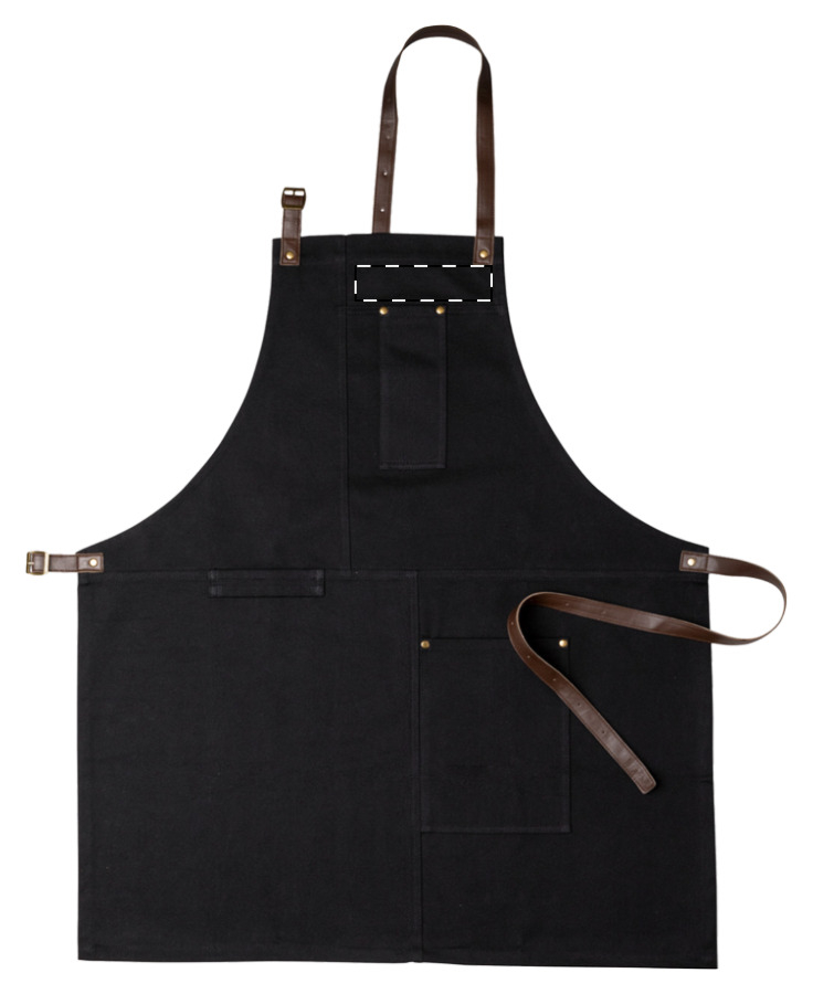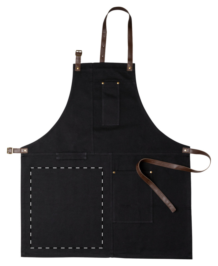 Grembiule in cotone con tasche frontali e cinghie regolabili in pelle PU, 340 g/m².