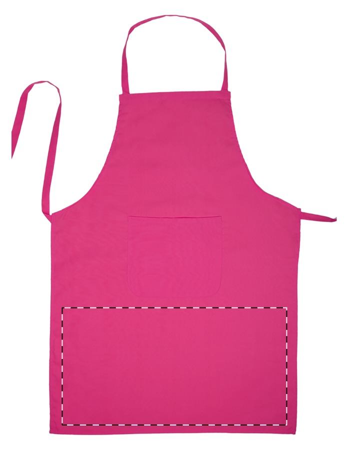 Grembiule composto in 35% cotone e 65% poliestere, con tasca frontale.