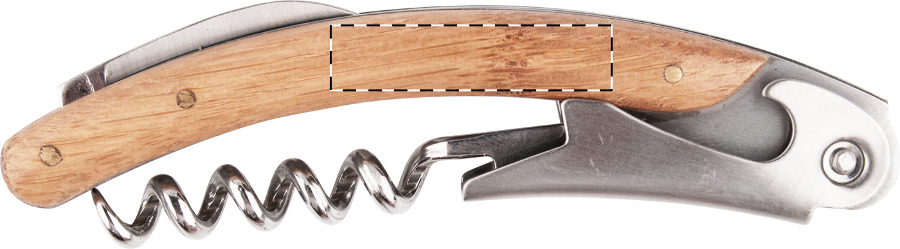 Set vino composto da un tappo, un cavatappi, un salva goccia ed un tappo versatore in scatola di bambù con scomparto per una bottiglia di vino, non inclusa.