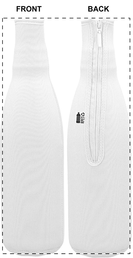Copertura refrigerante in neoprene RPET per bottiglie da vino o champagne, personalizzabile con grafica stampata in sublimazione su tutta la superficie. MOQ: 25 pezzi.