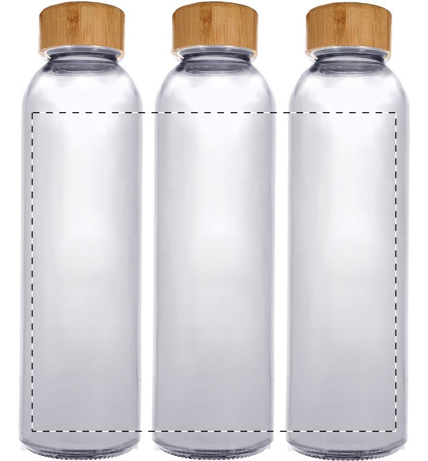 Borraccia in vetro 500 ml. con tappo in bambù e copertura in feltro RPET personalizzabile con grafica stampata a colori ed etichetta RPET. Il costo comprende la stampa in sublimazione. MOQ: 50 pezzi. Non adatta per l'utilizzo con bevande gassate.