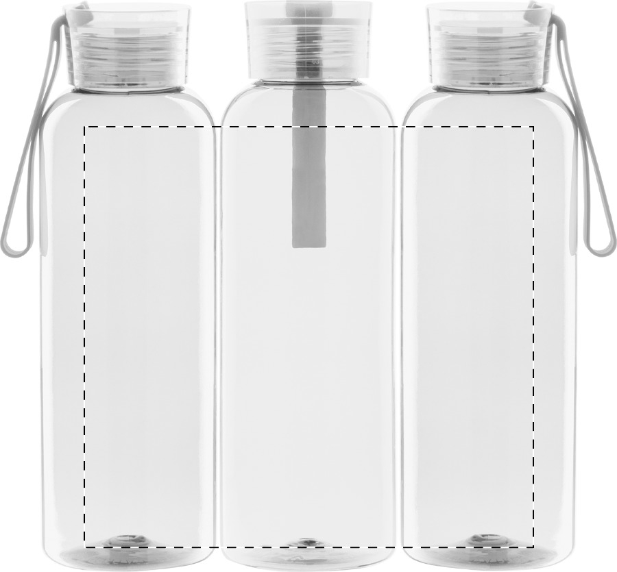Borraccia da 500 ml. in RPET con coperchio in colore coordinato e cinghia in silicone. Non adatta per l'utilizzo con bevande gassate.
