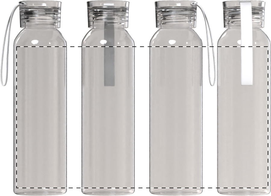 Borraccia in vetro riciclato da500 ml. con chiusura in PP in colore coordinato e tracolla in silicon. Non adatto a bevande gassate.