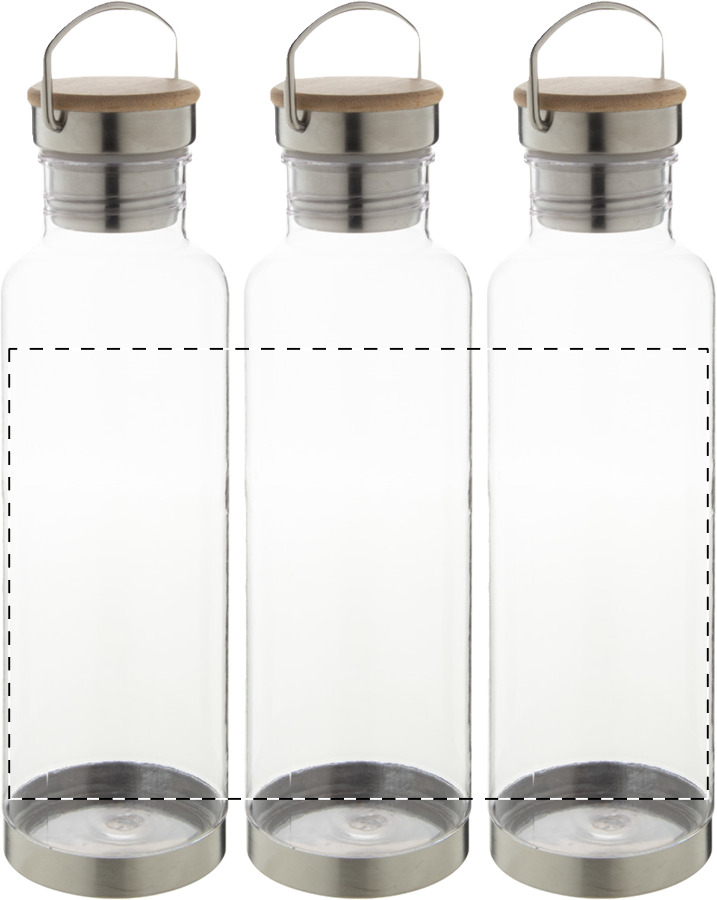 Borraccia da 800ml. in Tritan senza BPA con fondo in acciaio inossidabile e tappo con inserto in bambù. Non adatta per l'utilizzo con bevande gassate.