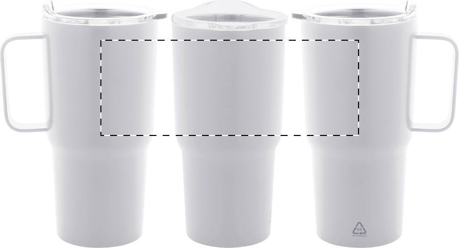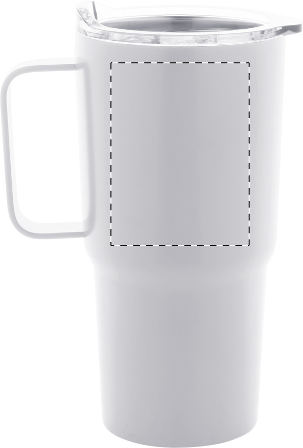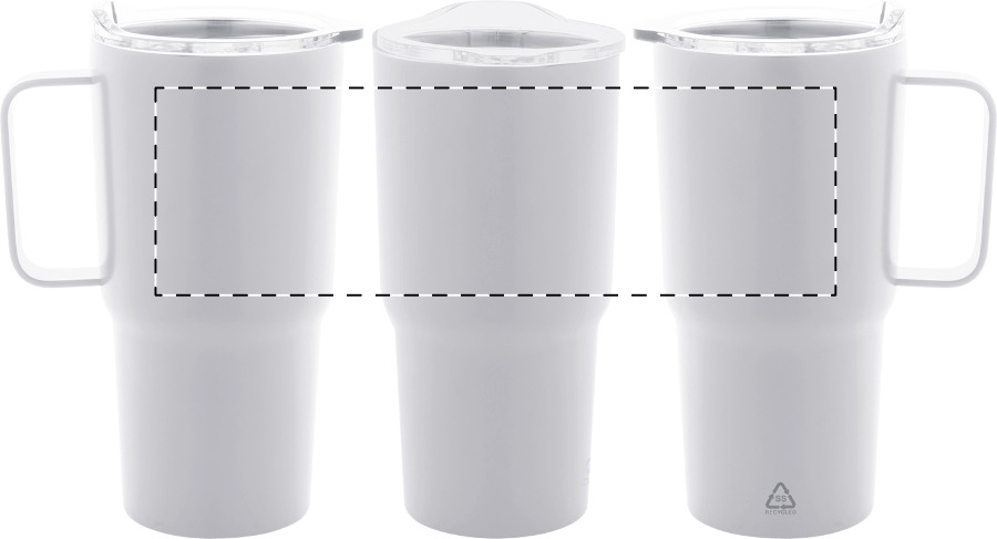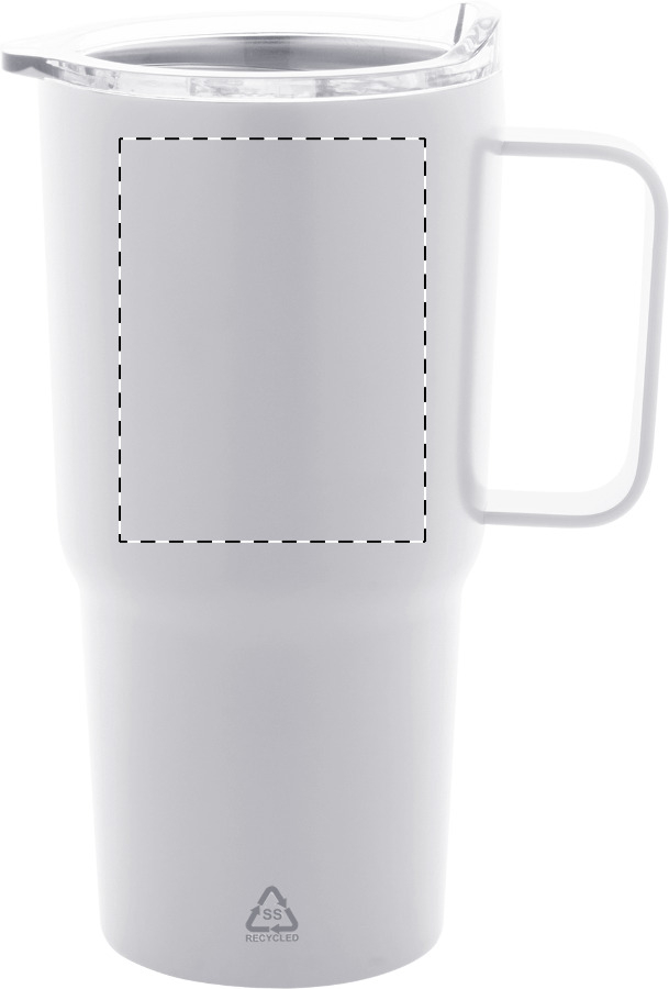 Tazza mug termica da 600ml. in acciaio inox riciclato a doppia parete con struttura termica sottovuoto e coperchio in plastica PS.