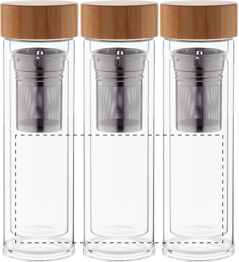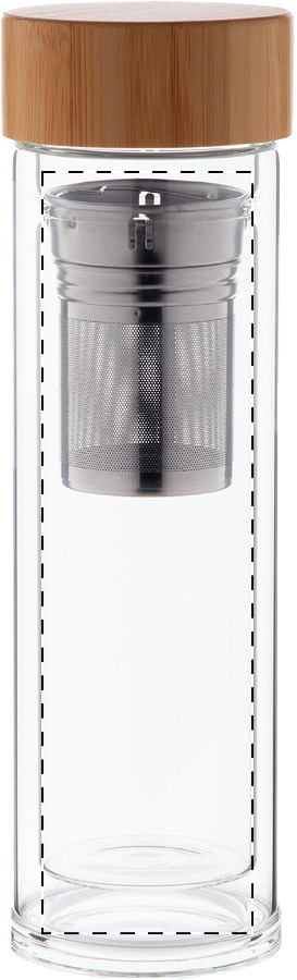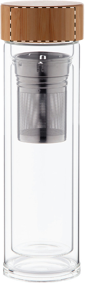 Borraccia termica da 420ml. in vetro borosilicato a doppia parete con infusore per tè e tappo in bambù.