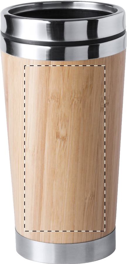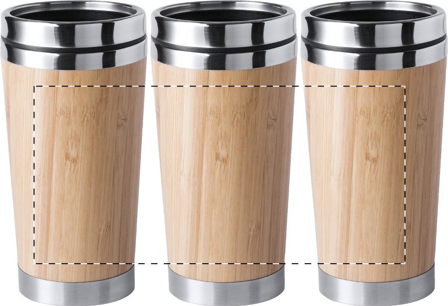Mug termico da 500ml. in acciaio a doppia parete con rivestimento in bambù, tappo erogatore e confezione in scatola.