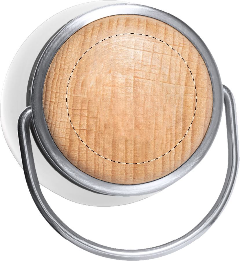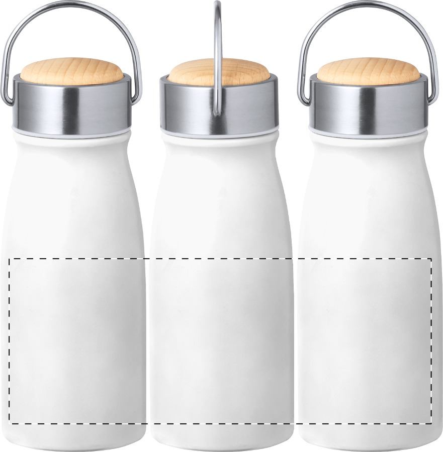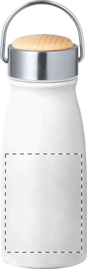 Borraccia isotermica da 350 ml. a doppia parete in acciaio inox riciclato con tappo in legno e maniglia.