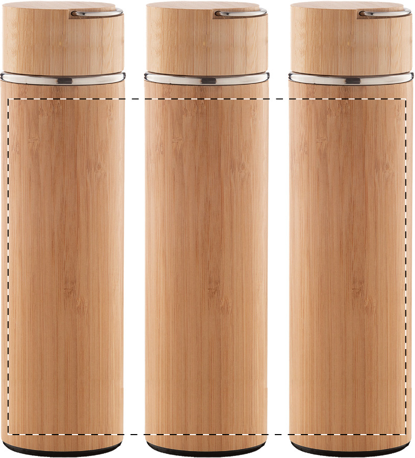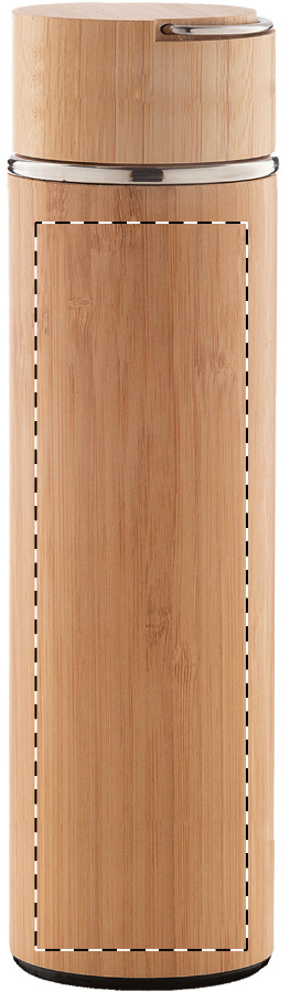 Thermos in acciaio inox doppia parete e bambù, con infusore per il the e coperchio. 450 ml.
