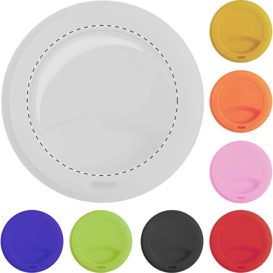 Mug termico da 300ml. in plastica personalizzabile a doppia parete con tappo erogatore e fascia in silicone. MOQ: 50pz.