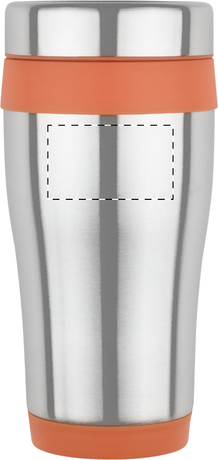 Bicchiere termico da 450ml. in acciaio a doppia parete con inserti in plastica colorata e confezione regalo.