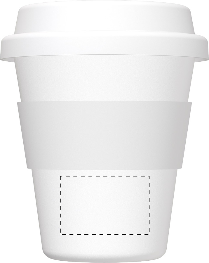 Bicchiere da viaggio da 350ml in plastica PP a parete singola con coperchio e fascetta in TPE.