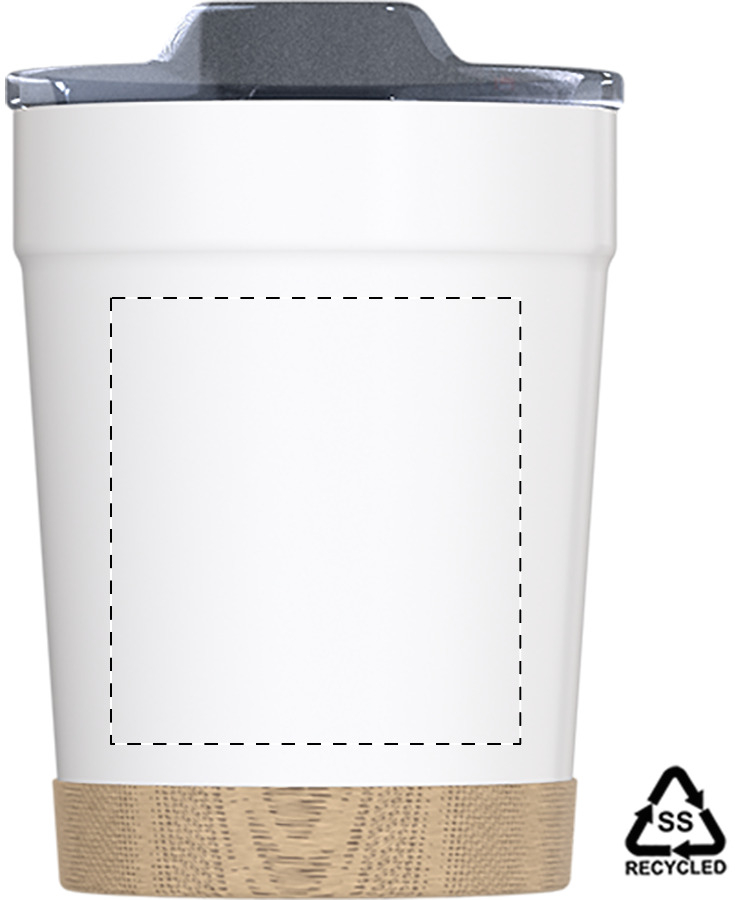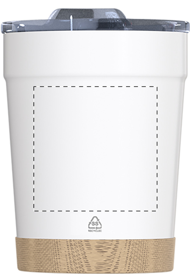 Bicchiere termico da 300ml. a doppia parete, in acciaio inox riciclato con base in bambù e coperchio in plastica AS.