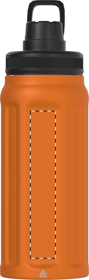 Borraccia termica in acciaio riciclato a doppia parete da 540ml., con rigature verticali e tappo in PP con manico integrato.