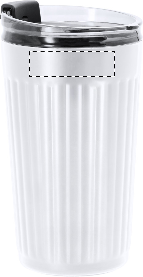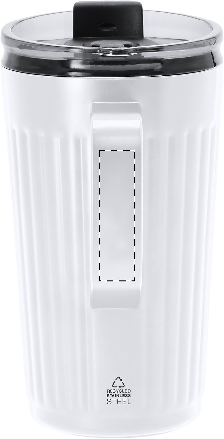 Tazza termica da 350 ml. a doppia parete in acciaio inox riciclato con coperchio erogatore.