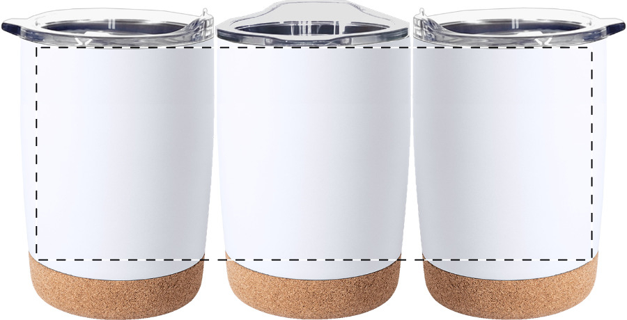 Bicchiere termico da 380ml. in acciaio a doppia parete con tappo erogatore in plastica trasparente, base in sughero e confezione regalo.