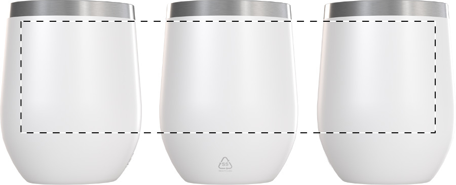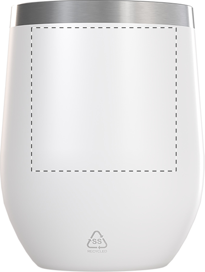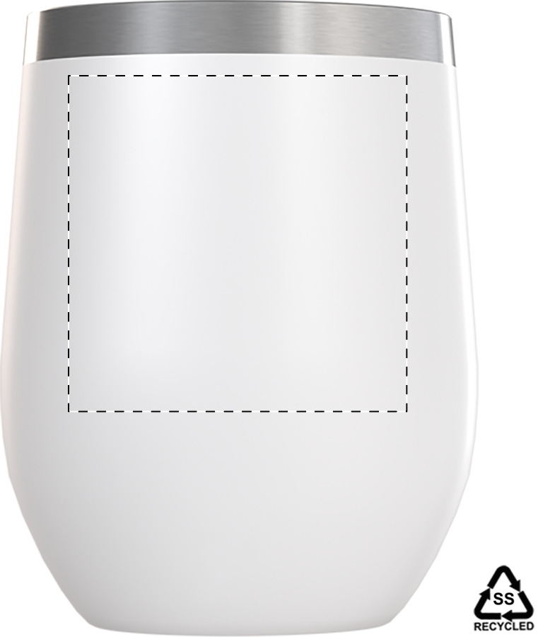 Bicchiere termico da 350 ml. a doppia parete, in acciaio inox riciclato con coperchio in plastica, senza manico.