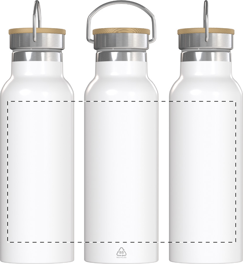 Borraccia termica da 500ml. in acciaio riciclato a doppia parete ideale per stampe in sublimazione con coperchio in bambù. 500 ml.