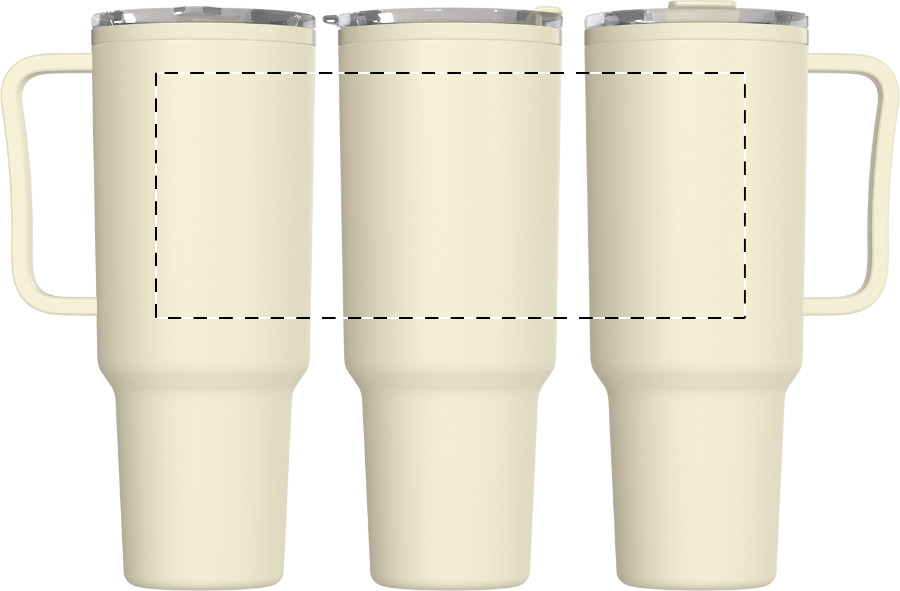 Tazza mug termica da 1100ml. in plastica PP a doppia parete con coperchio e cannuccia.
