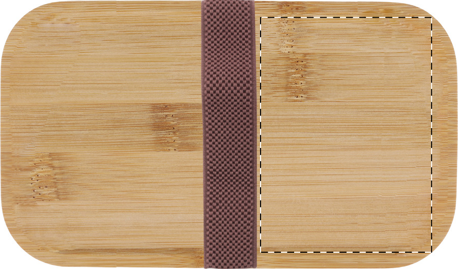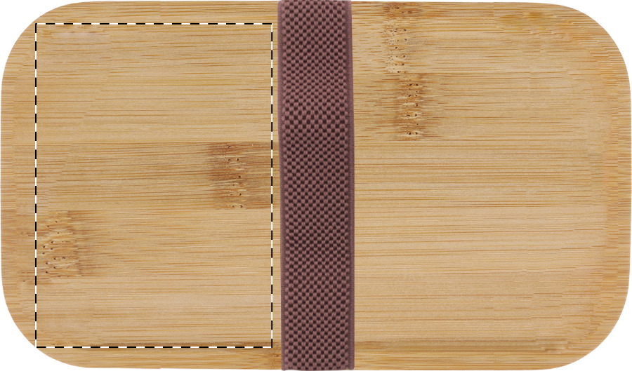 Scatola per il pranzo in plastica PP con set di posate (forchetta, cucchiaio e coltello), coperchio in bambù e cinturino elastico. Con 2 scomparti di 700 ml di capacità ciascuno.