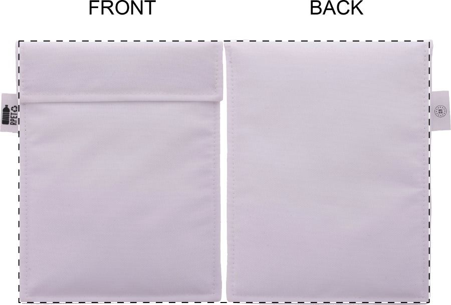 Porta merenda riutilizzabile, in poliestere 600D RPET, chiusura a velcro e resistente fodera impermeabile. Ideale per contenere snack o sandwich. Personalizzazione con grafica stampata in sublimazione su tutta la superficie. MOQ: 25 pezzi.