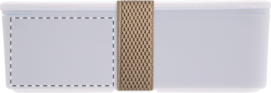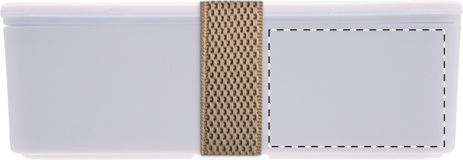 Scatola per il pranzo in plastica PLA con set di posate (forchetta, cucchiaio e coltello) e cinturino elastico in poliestere RPET, 1000 ml. PLA senza BPA, 100% compostabile.