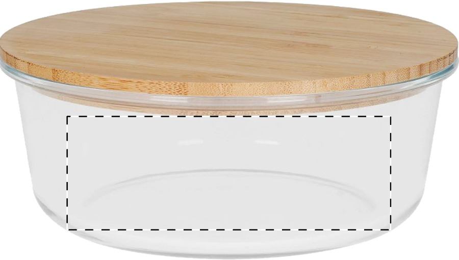 Contenitore per il pranzo in vetro di forma rotonda con coperchio in bambù naturale, 650 ml.