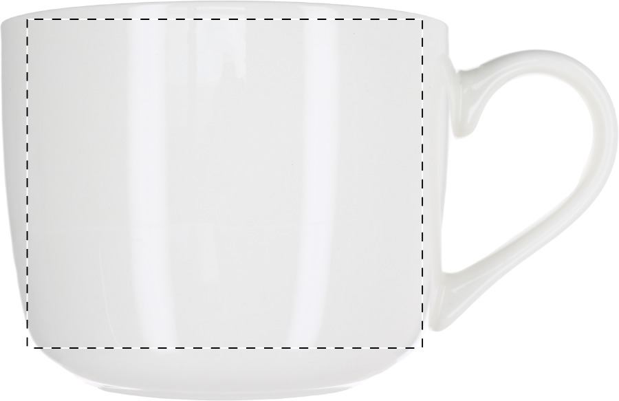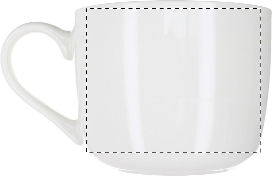 Tazza bianca in porcellana di alta qualità e grandi dimensioni con sottobicchiere in bambù. Capacità 400 ml. In confezione regalo.