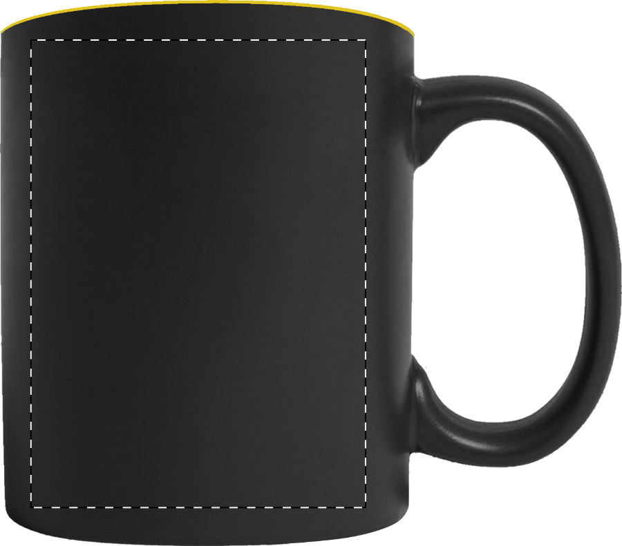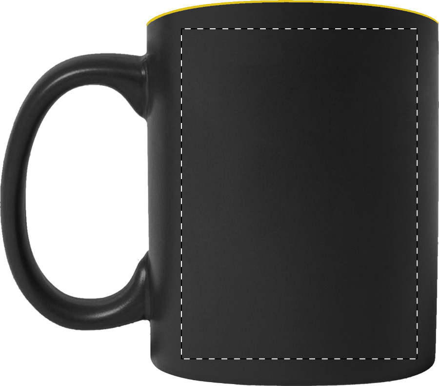 Tazza mug in ceramica nera da 350 ml. con interno colorato e speciale rivestimento esterno ideale per l'incisione, il logo inciso avrà lo stesso colore dell'interno della tazza. Fornita in confezione regalo.