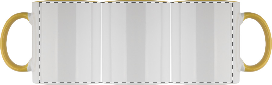 Tazza mug in ceramica da 350 ml. per stampa in sublimazione con esterno bianco, interno e manico in colore coordinato. Fornita in confezione regalo.
