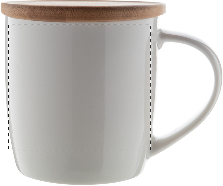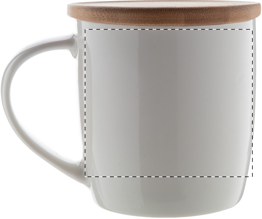 Tazza mug di porcellana di alta qualità 320 ml. in colore bianco con sottobicchiere di bambù. In confezione regalo.