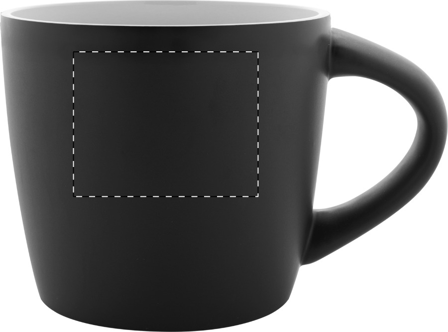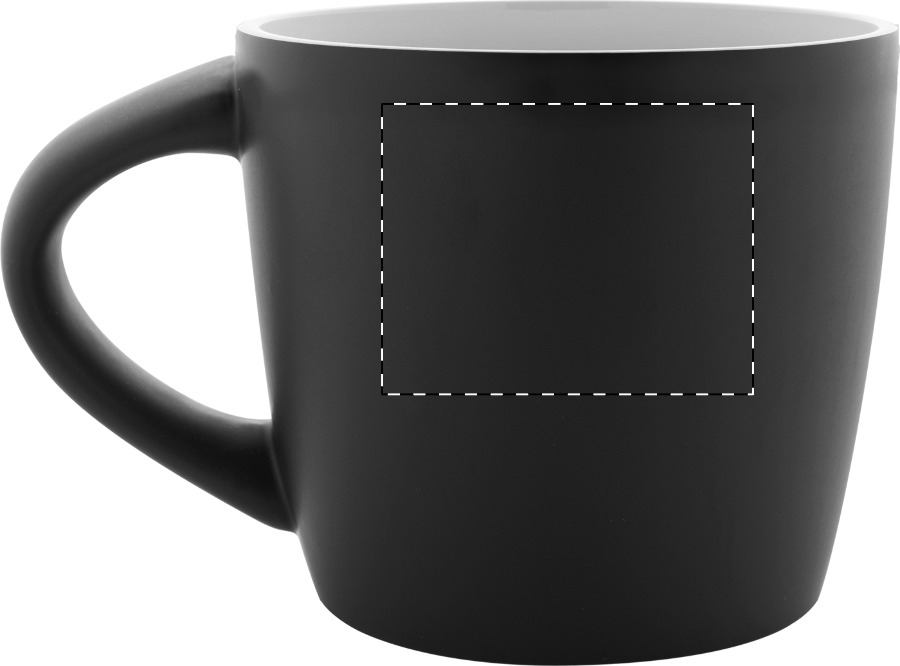 Tazza mug in ceramica di alta qualità da 300ml. con finitura esterna nera opaca e interna colorata lucida. Confezionata in scatola di cartoncino kraft.