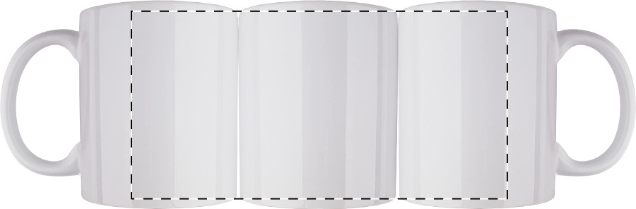 Tazza mug in ceramica bianca da 300ml. per stampa in sublimazione, lavabile in lavastoviglie. Confezione in scatola di cartoncino bianco.