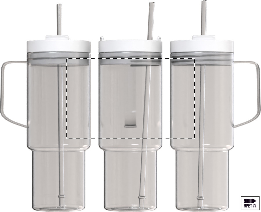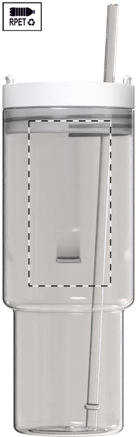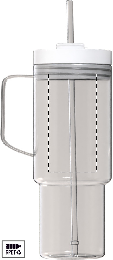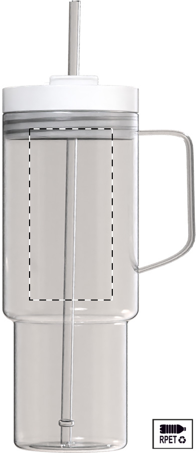 Tazza da viaggio mono parete in RPET da 1200ml. con coperchio e cannuccia in PP in colore coordinato.