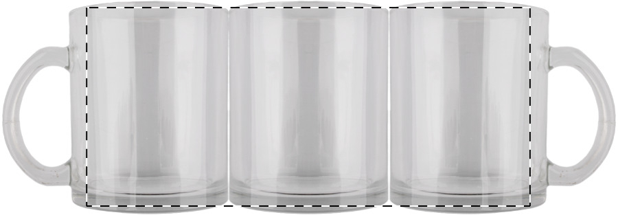 Tazza mug in vetro da 300 ml. lavabile in lavastoviglie, personalizzabile in sublimazione.
