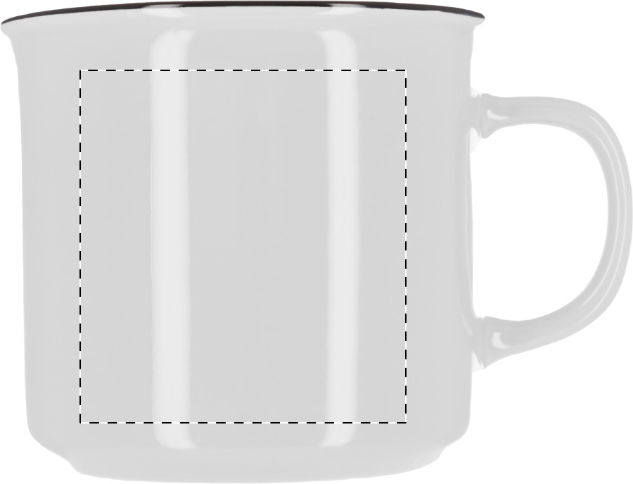 Tazza vintage in ceramica con bordo nero, interno bianco ed esterno colorato, 300 ml. In confezione singola.