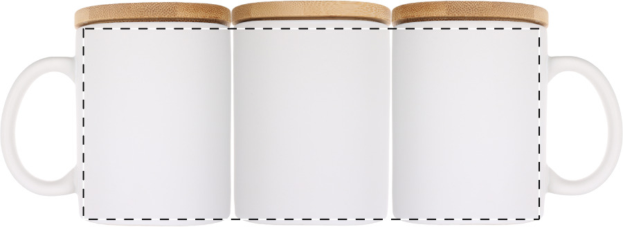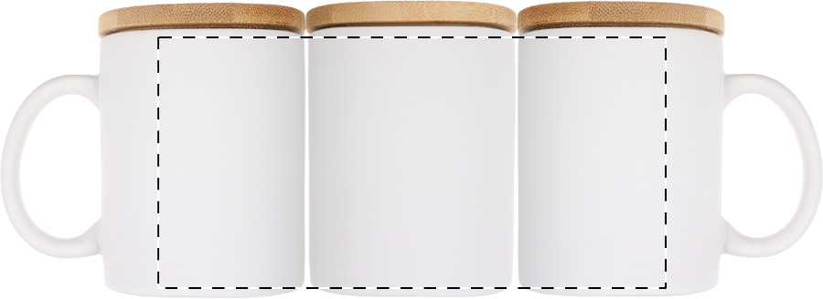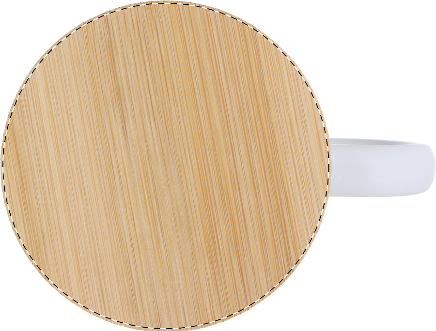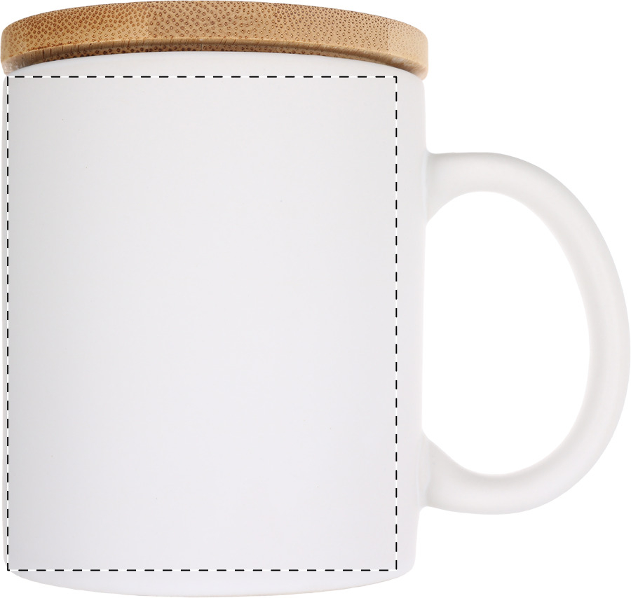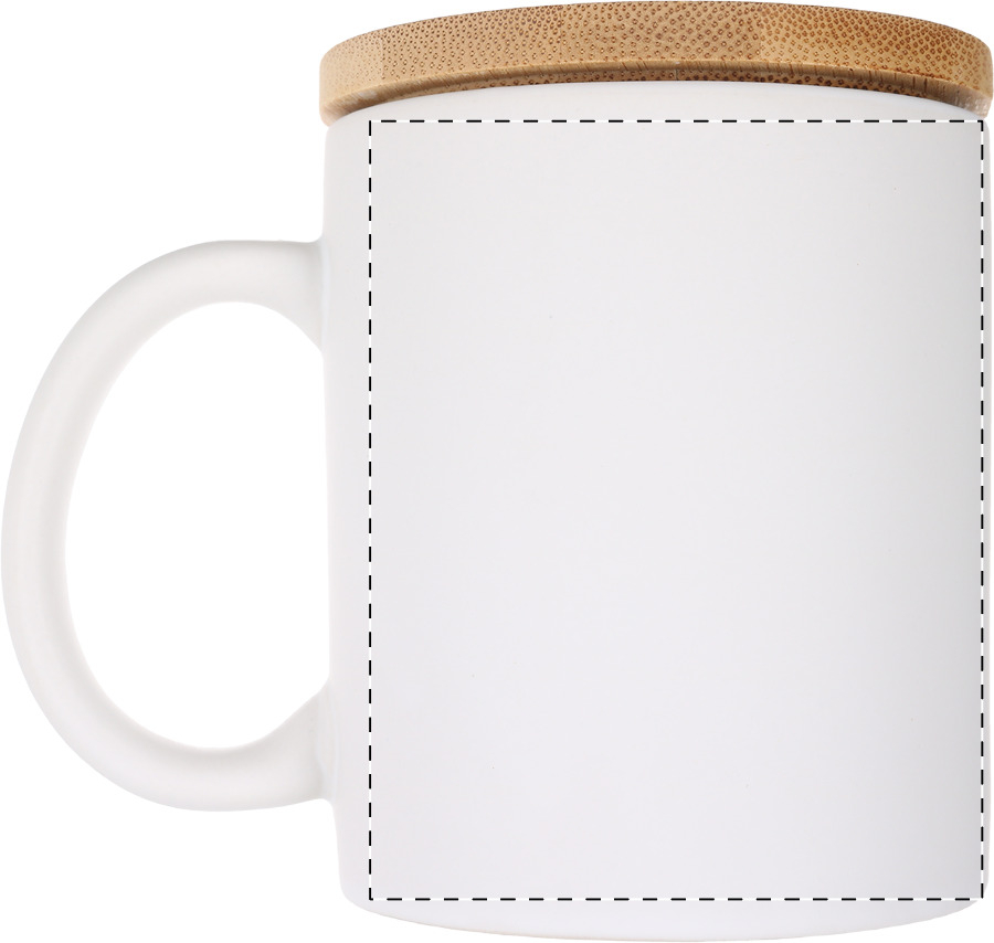Tazza mug in ceramica da 370 ml. con finitura opaca e coperchio in bambù. Fornita in confezione di cartoncino kraft.
