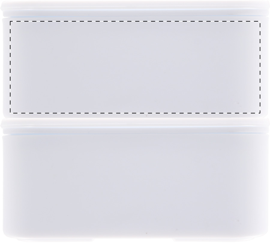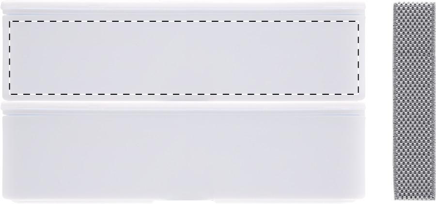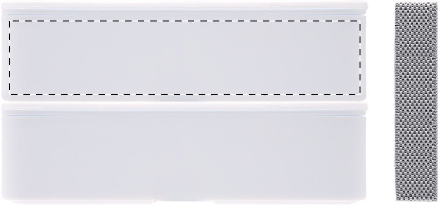 Contenitore per il pranzo in plastica antibatterica con set di posate (forchetta, cucchiaio e coltello), 2 scomparti da 700 ml ciascuno e fascia elastica di chiusura. Conforme alla normativa ISO 22196.