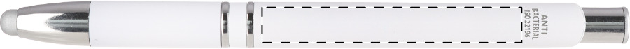 Penna a sfera capacitiva in plastica antibatterica con refill blu. Conforme alla norma ISO 22196.