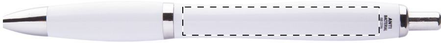 Penna a sfera con fusto in plastica antibatterica e parti cromate. Contiene un nano additivo all'argento che impedisce la formazione di batteri sul corpo della penna. Con meccanismo a scatto e refill blu. Conforme alla norma ISO 22196:2011.