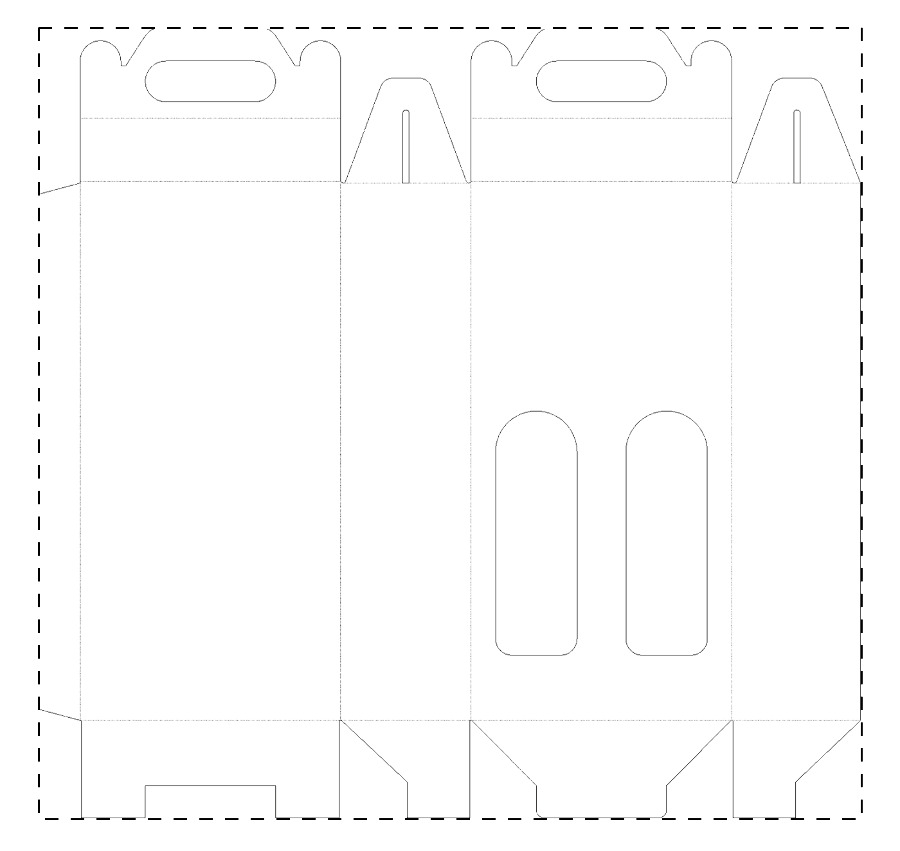 Scatola in cartone ondulato con maniglia per due bottiglie di vino da 0,75l., personalizzata con stampa a colori. Fornita in confezione piatta, senza bottiglia di vino. MOQ: 50 pz.