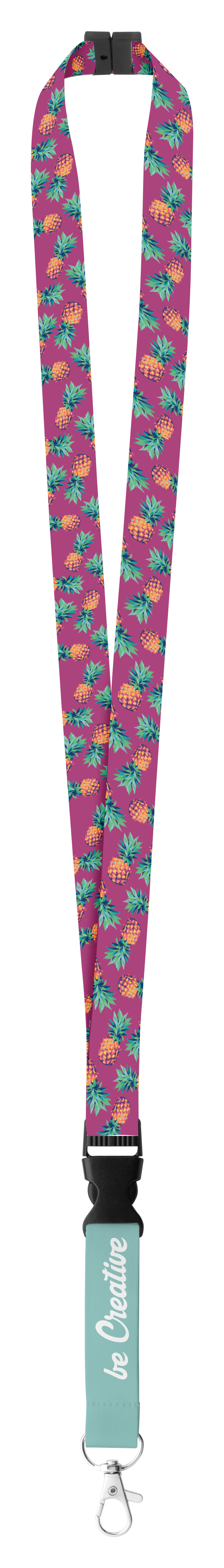 Lanyard in poliestere con moschettone staccabile in metallo e fibbia di sicurezza. Con grafica in sublimazione stampata su entrambi i lati. Quantità minima: 100 pezzi.