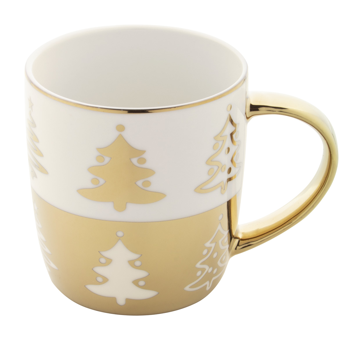 Tazza 350 ml. in porcellana con disegno natalizio metallico.