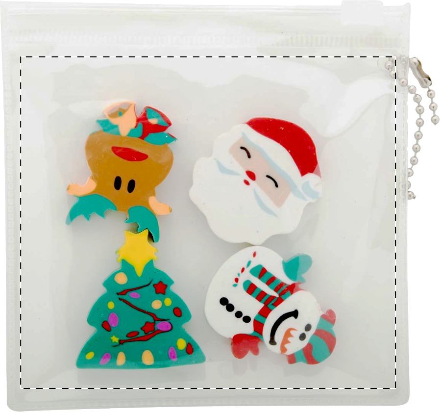 Set di 4 gomme per cancellare in forme natalizie, in sacchetto di PVC.