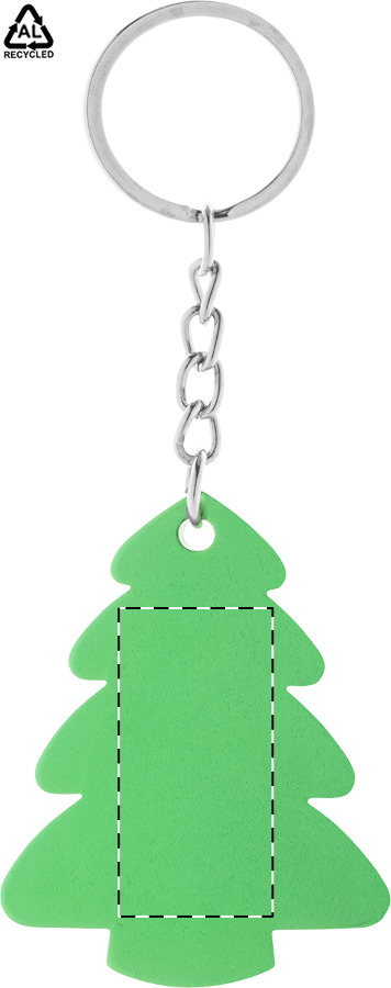Portachiavi in alluminio riciclato a forma di albero di Natale con anello in metallo.