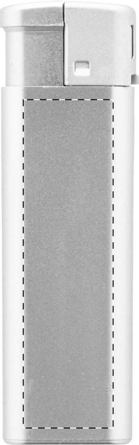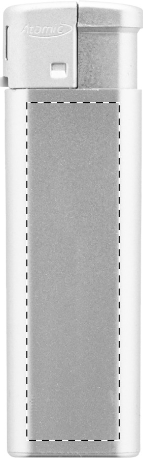 Accendino piezoelettrico ricaricabile in plastica con colorazione metallizzata. Protezione bambini. Fornito con circa l'80% di carica ed acquistabile solo per imballi completi e multipli di 1000 pezzi!