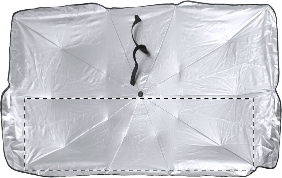 Ombrello parasole per auto pieghevole per parabrezza con struttura in metallo. In custodia di poliestere.